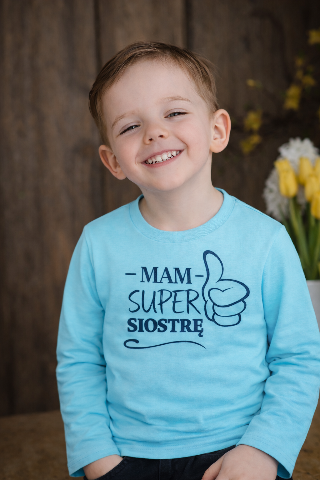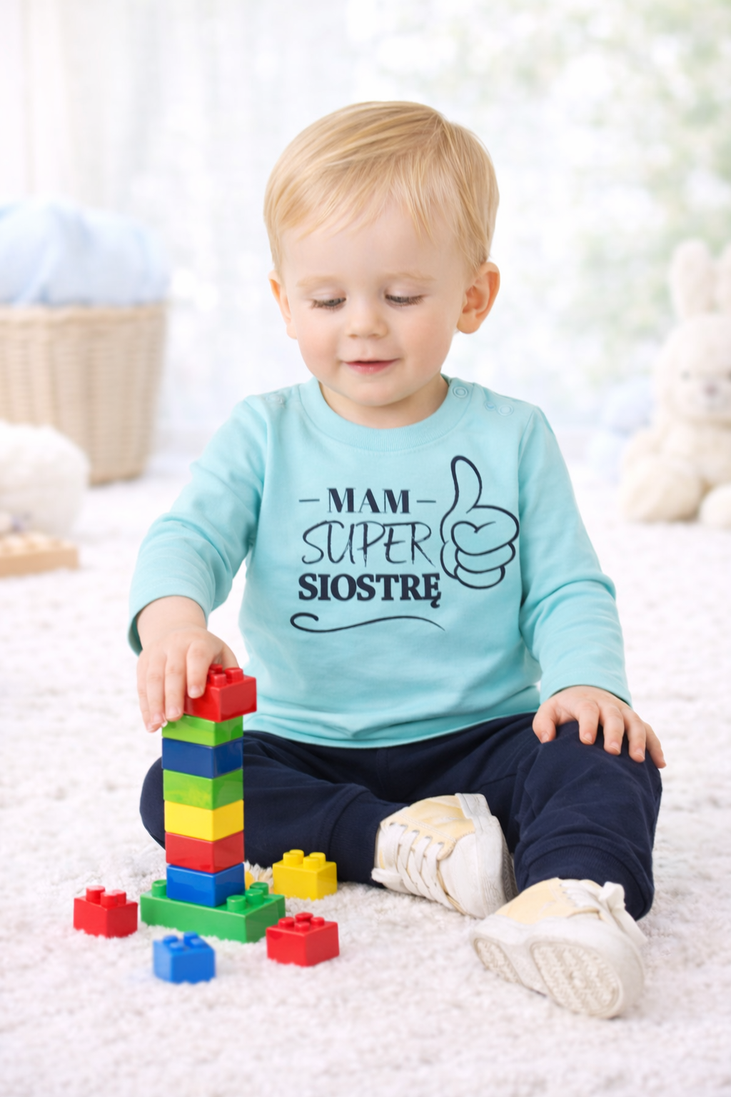 Do bluzeczki można dopasować spodnie dresowe, tworząc wygodny i praktyczny komplet dla chłopca – idealny na co dzień oraz na prezent.