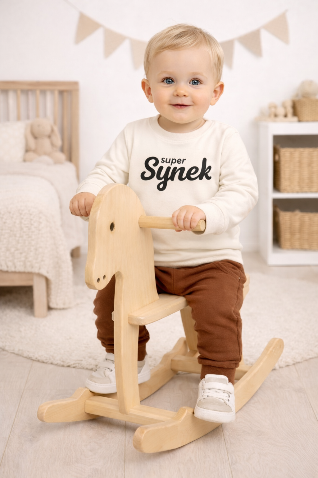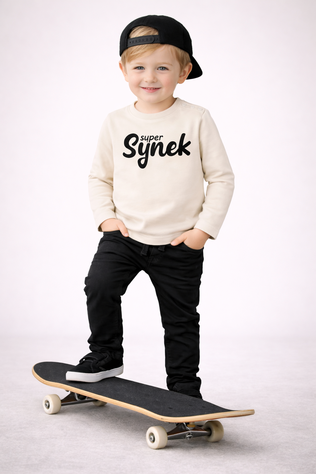 Do bluzeczki można dopasować spodnie dresowe, tworząc wygodny i praktyczny komplet dla chłopca – idealny na co dzień oraz na prezent.