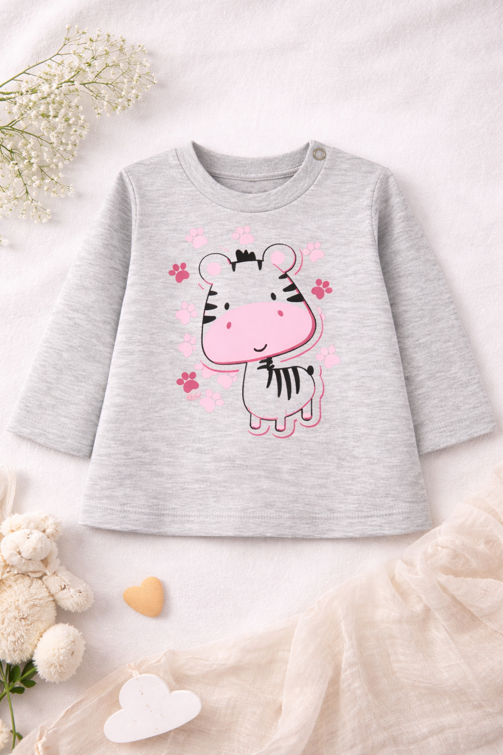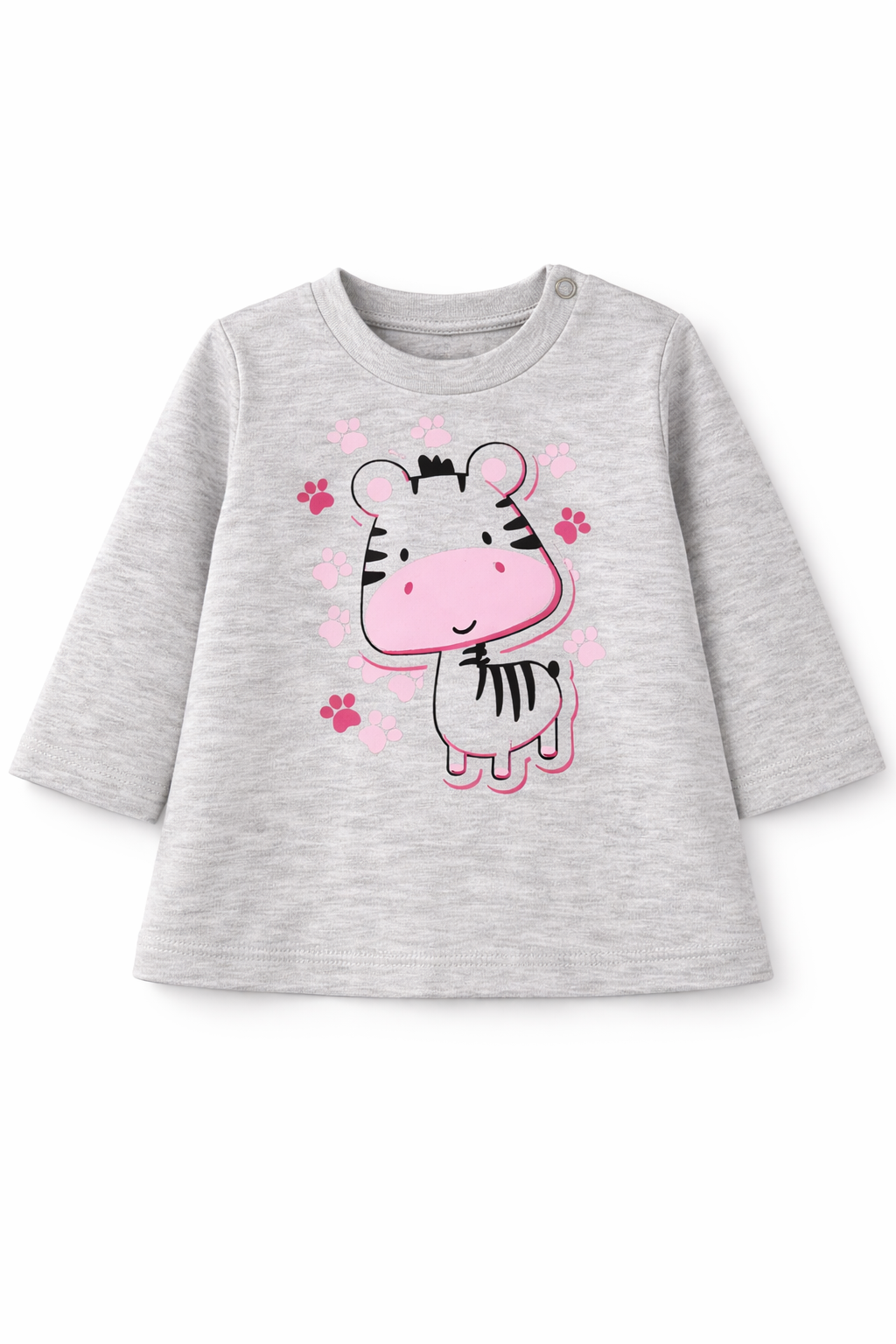Bluzeczka niemowlęca idealnie sprawdzi się na co dzień, do żłobka, na spacer lub jako element wyprawki. Dla łatwiejszego ubierania rozmiary 62 i 68 zostały wyposażone w praktyczne zapięcie na ramiączku na bezniklowe napy.