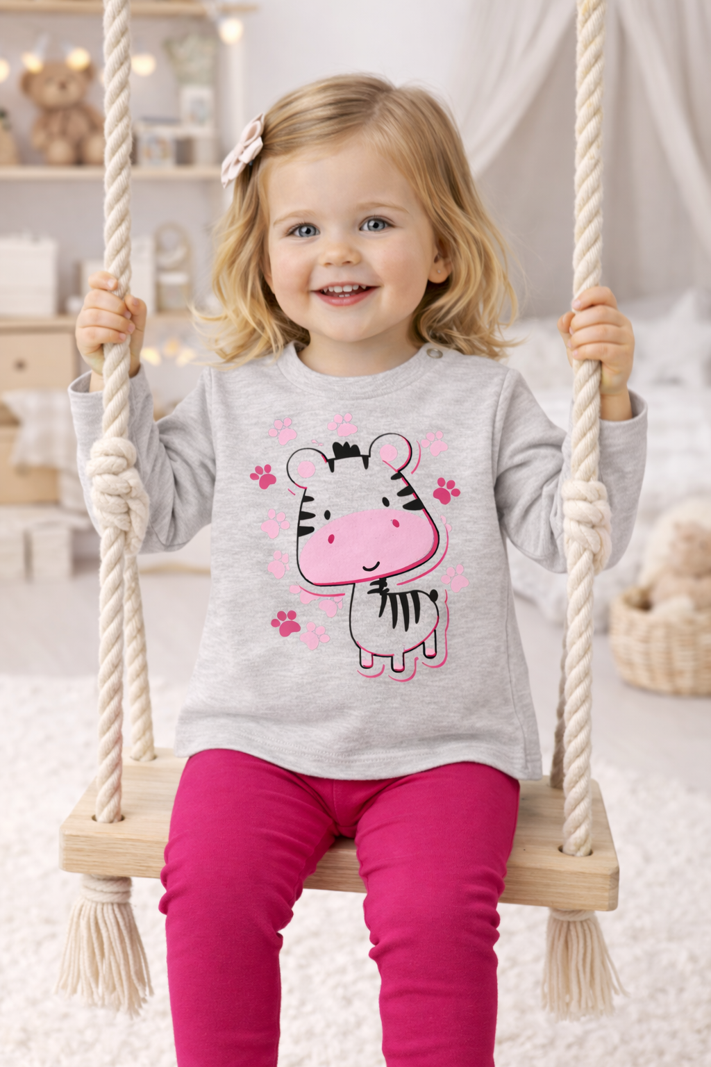 Do bluzeczki można dopasować getry, tworząc wygodny i stylowy komplet dla dziewczynki – idealny na co dzień oraz na prezent.