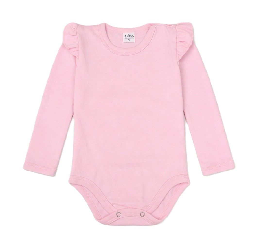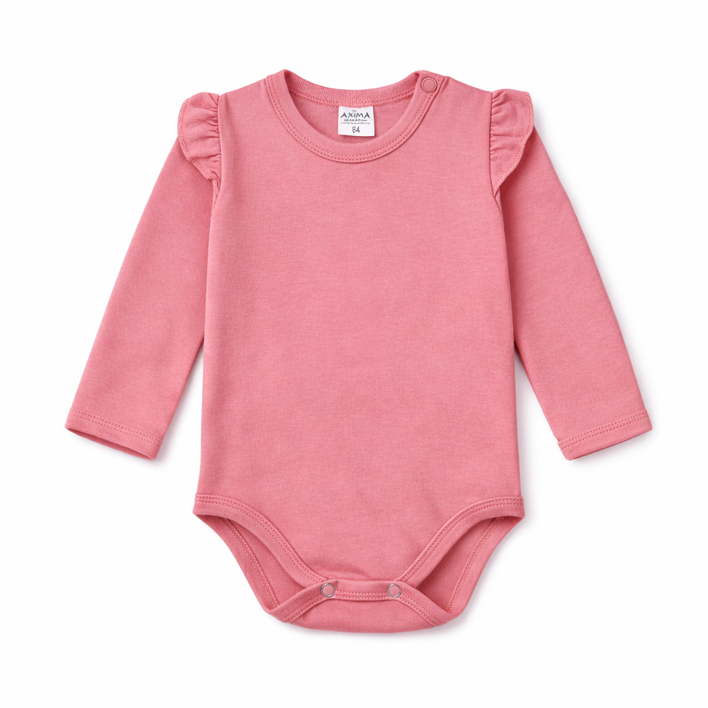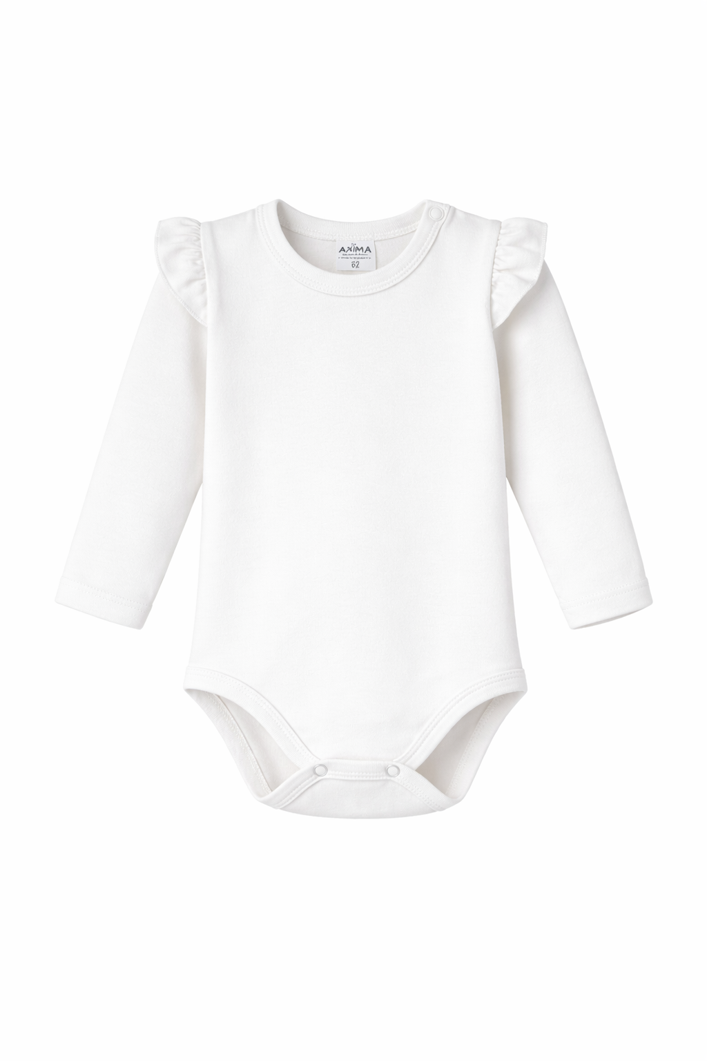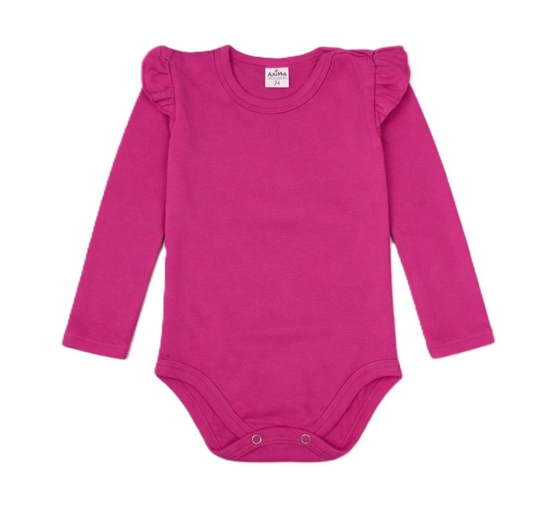 Eleganckie body niemowlęce z falbankami przy rękawkach marki Axima to idealne połączenie stylu i komfortu dla najmłodszych. Wykonane w 100% z wysokiej jakości bawełny, zapewnia delikatność, przewiewność i bezpieczeństwo dla wrażliwej skóry dziecka.