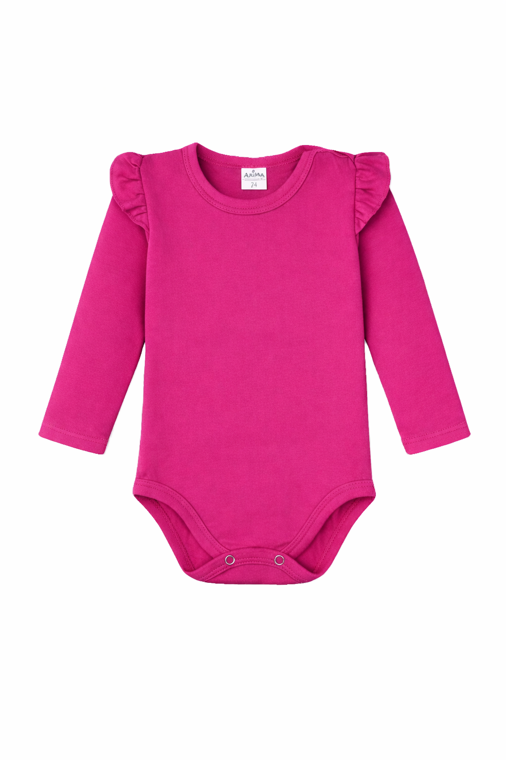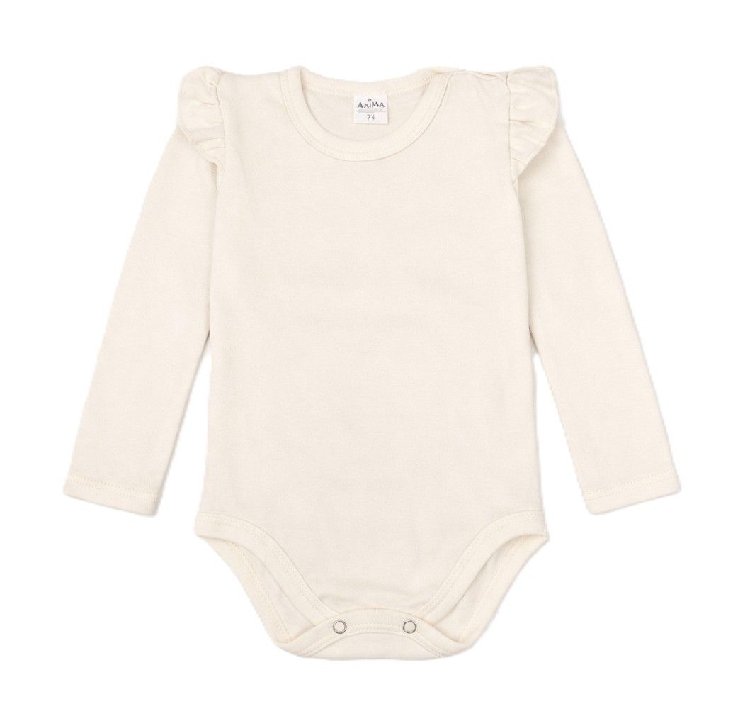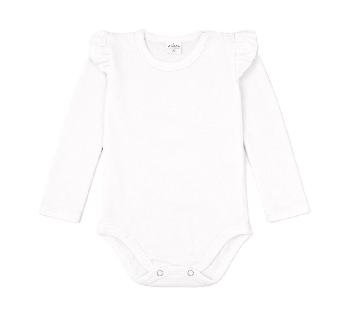 Eleganckie body niemowlęce z falbankami przy rękawkach marki Axima to idealne połączenie stylu i komfortu dla najmłodszych. Wykonane w 100% z wysokiej jakości bawełny, zapewnia delikatność, przewiewność i bezpieczeństwo dla wrażliwej skóry dziecka.