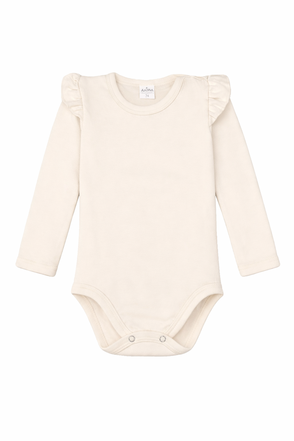 Body posiada praktyczne zapięcie na bezniklowe napy, które są antyalergiczne i wygodne w codziennym użytkowaniu. Subtelne falbanki nadają ubranku elegancki wygląd, dzięki czemu świetnie sprawdzi się zarówno na co dzień, jak i na specjalne okazje.