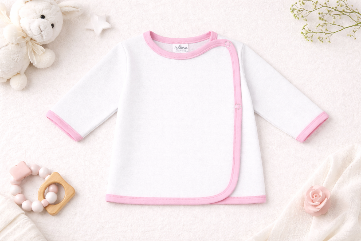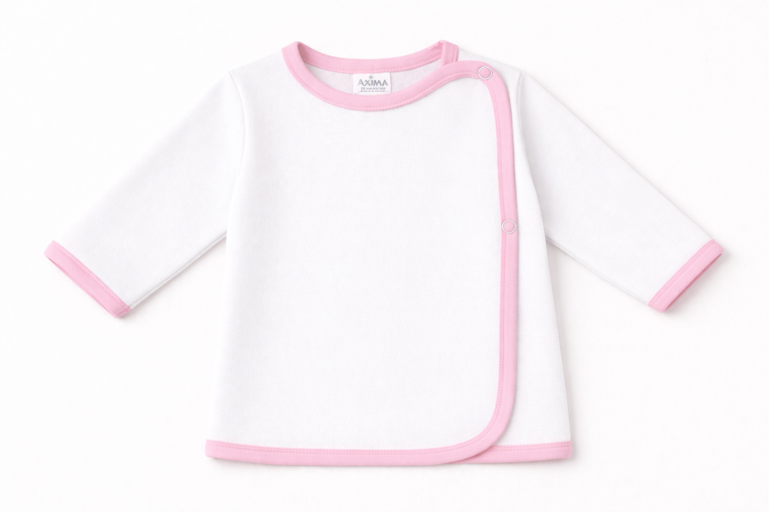 Koszulka niemowlęca kopertowa marki Axima to idealny wybór dla najmłodszych już od pierwszych dni życia. Wykonana w 100% z naturalnej bawełny, jest niezwykle miękka, delikatna i bezpieczna dla wrażliwej skóry dziecka.