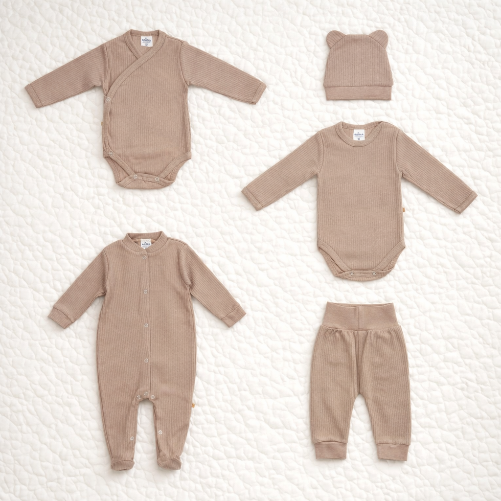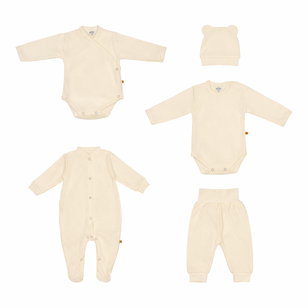 Wyprawka niemowlęca 5 elementów Axima – 100% bawełna, dzianina prążkowa, certyfikat OEKO-TEX