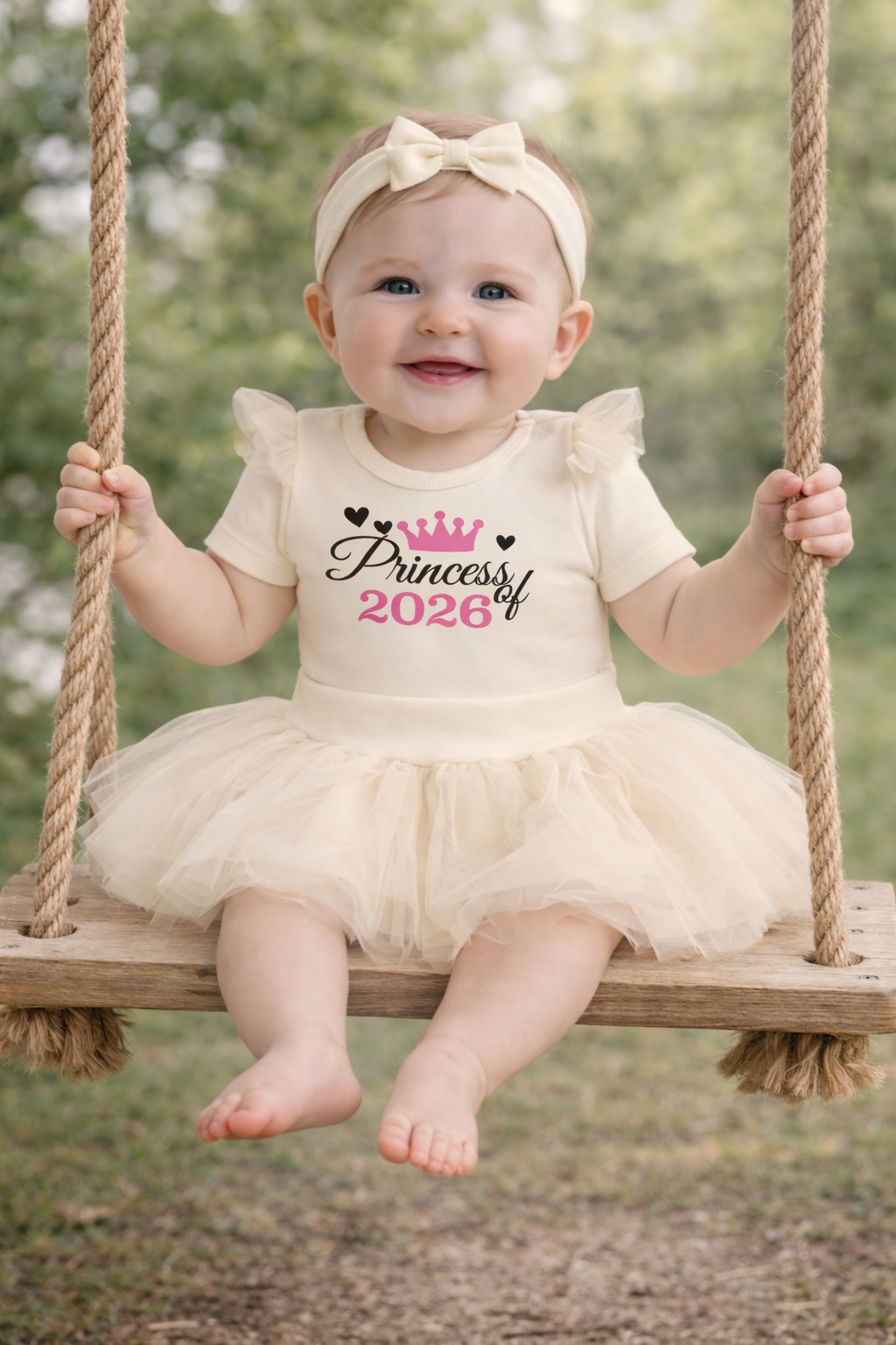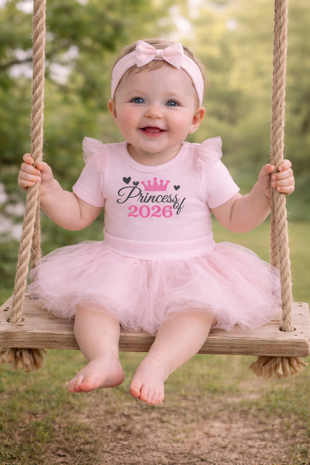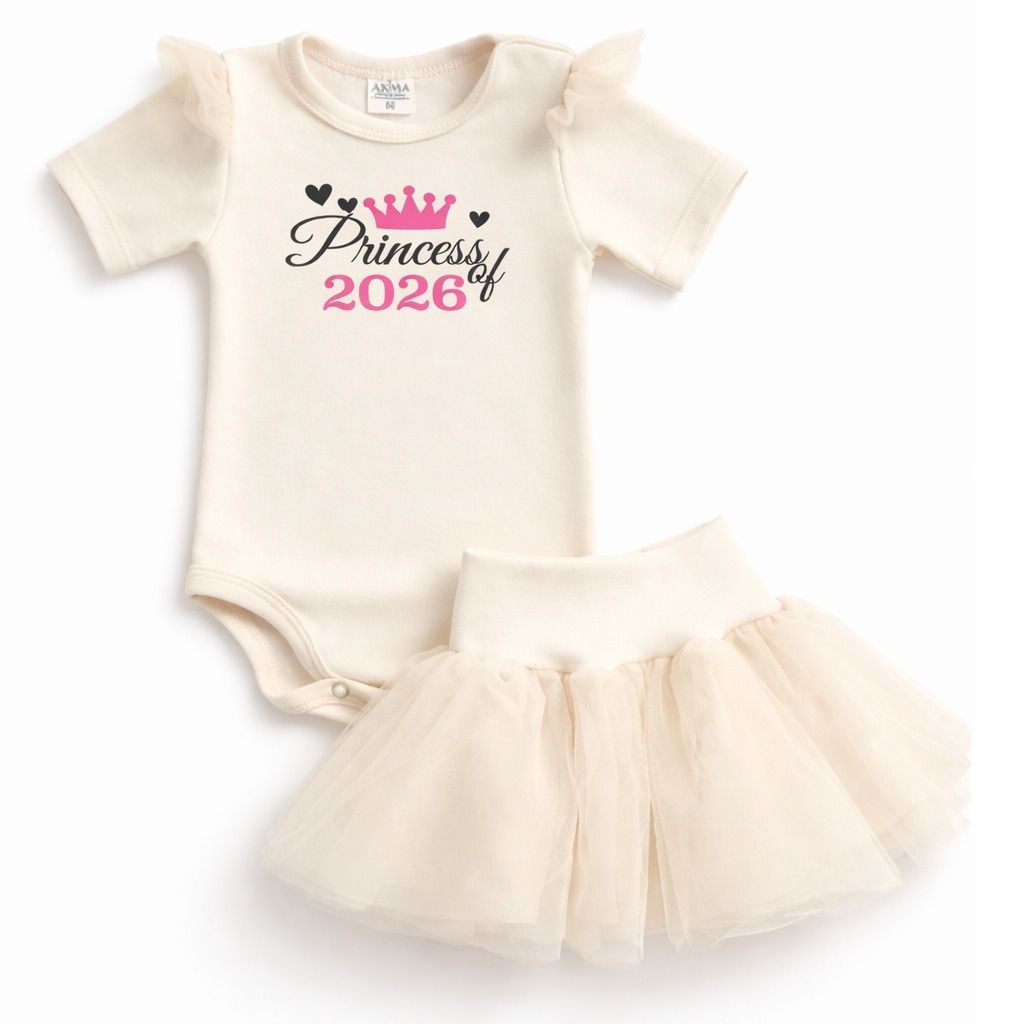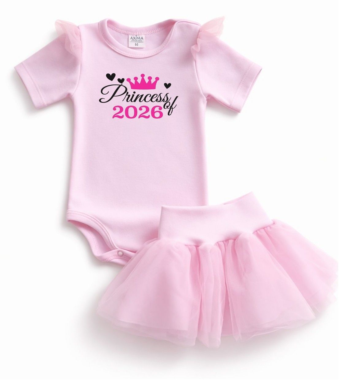 Uroczy i stylowy komplet dziewczęcy Axima Princess 2026 to idealna propozycja dla małej księżniczki. W zestawie znajduje się body na krótki rękaw z napisem Princess 2026 oraz efektowna spódniczka tiulowa, która nadaje całości wyjątkowego uroku.