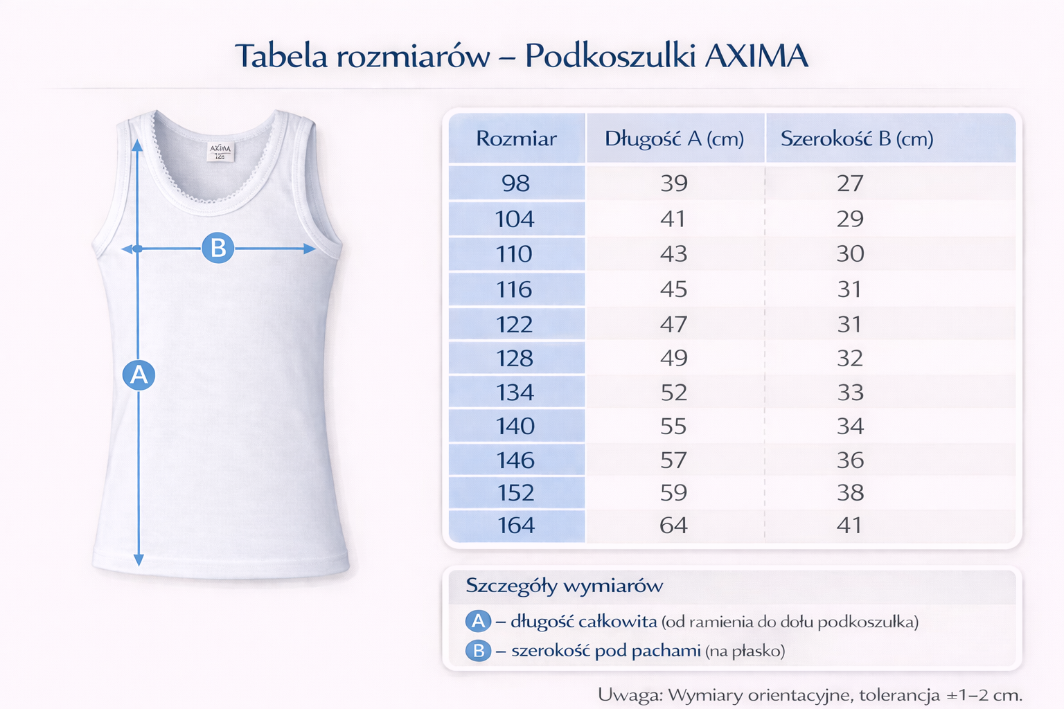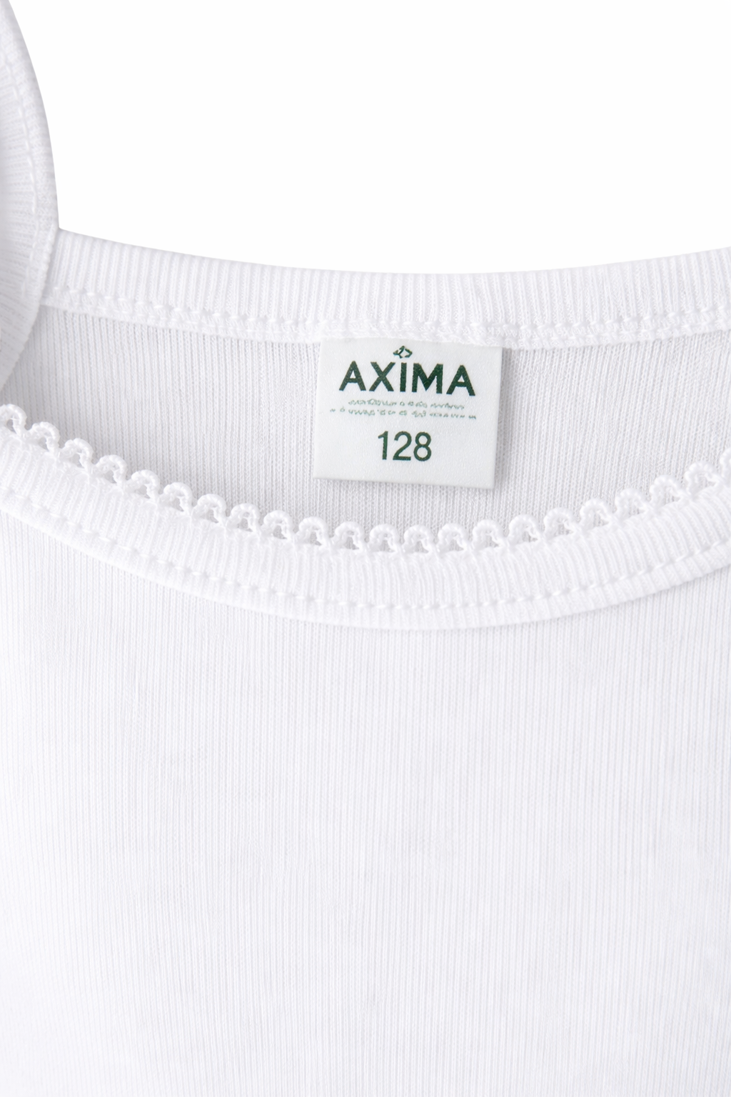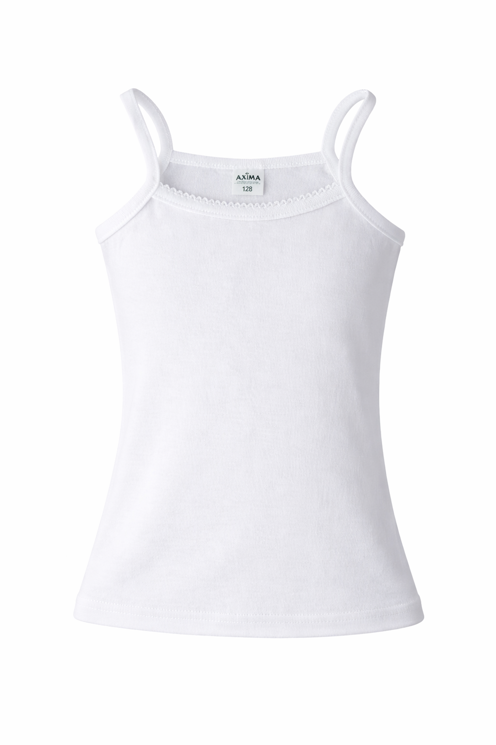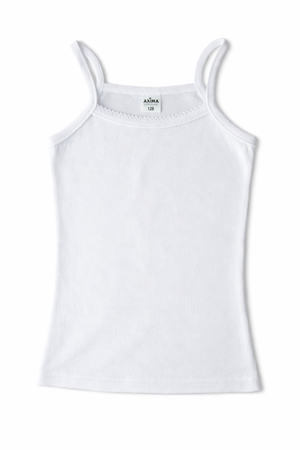 Podkoszulek dziewczęcy AXIMA na cienkich ramiączkach to idealne połączenie wygody i subtelnego stylu. Naturalna bawełna zapewnia przewiewność, a ozdobna kroszetka przy dekolcie dodaje uroku i dziewczęcego charakteru.