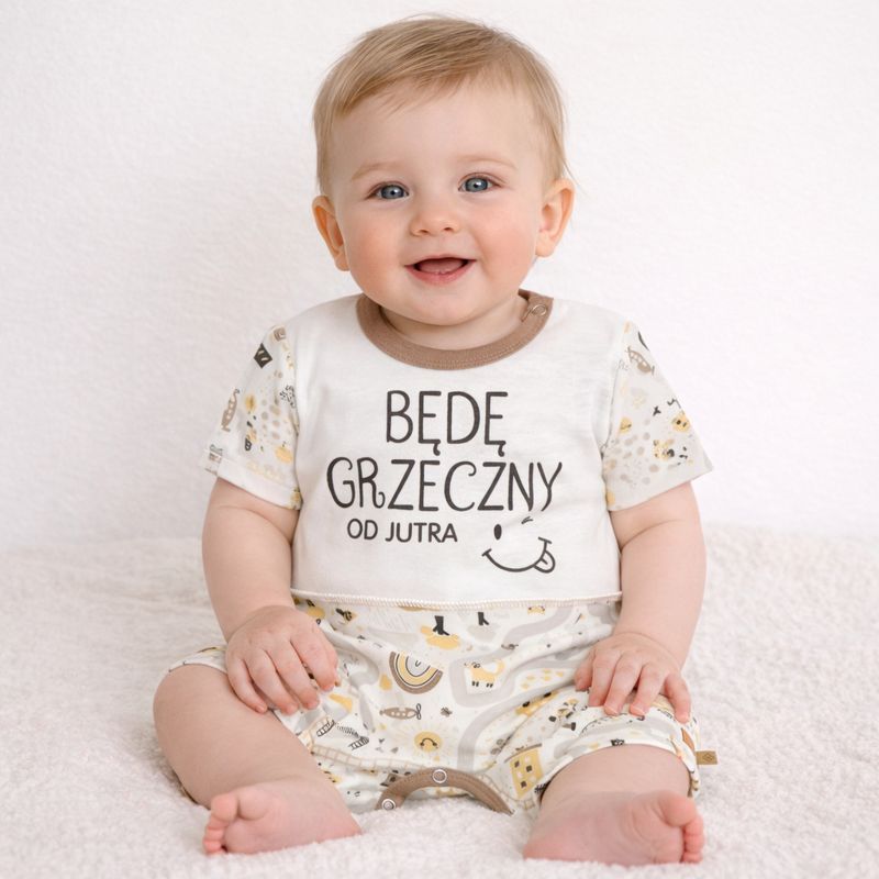 Jest to doskonała propozycja dla rodziców ceniących wygodę oraz piękne wzornictwo. Uszyty z najwyższej jakości mięciutkiej 100% bawełny. Rozpinany przy szyi orza w kroczku . Zapewnia maluchowi komfort i swobodę . Doskonale sprawdzi się jako piżamka do spania podczas letnich upałów,